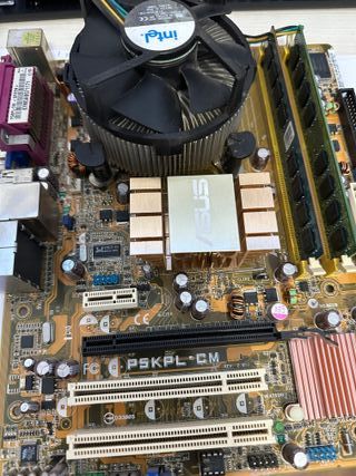 Placa base ASUS modelo PSKPL-CM. - 4GB de RAM -Procesador Intel dúo -Disco duro 320GB + 8€ Ideal para montaje de testing y ofimática. Pasta térmica cambiada.