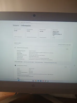 Modelo: 15-ec0004ns Pantalla: 15” CPU: AMD RYZEN 5 3550H Gráfica: Nvidia GeForce Gtx 1650 6GB RAM: 16 GB Disco duro: SSD 500 GB Batería: 279 ciclos de 1000. Estado débil ( detallado en fotos) Teclado: QWERTY Sistema: Windows 11 HOME 64 bits recién instalado. Caja: sí Cargador : original hp sí Estado Estético: Impecable.