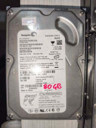 Disco duro interno de 3.5 pulgadas. - Modelo: Seagate Barracuda 7200.9 - Capacidad: 80 GB - Interfaz: SATA - Velocidad: 7200 RPM - Fabricado en China Disco duro 3.5” SATA PRECIO INDIVIDUAL TODOS SON DE 80GB. Todos llevan la conexión sata. TODOS HAN SIDO TESTEADOS Y COMPROBADOS CON CRYSTAL DISK Y SU ESTADO ES BUENO. UNIDAD SUELTA. 1,50€ SOLO DISPONIBLE 1 UNIDAD DE ESTA CAPACIDAD
