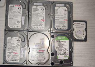 Se vende lote de 7 discos duros SATA de diferentes marcas. - Discos duros SATA. - Marcas: Hitachi, Seagate, Western Digital. - Capacidades: 160GB, 250GB, 500GB y 1.5TB Todos los discos son funcionales en estado en riesgo, se adjunta la captura de todos ellos en crystaldisk. No se aceptan reclamaciones o devoluciones.
