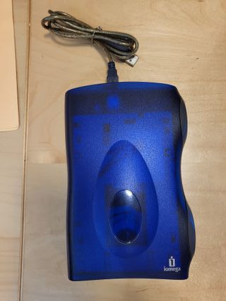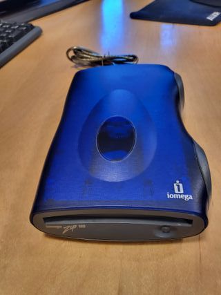 Unidad de disco Iomega ZIP 100 MB. - Conexión USB con cable. - Diseño compacto y portátil. - Color azul. - Estado estético como nuevo.
