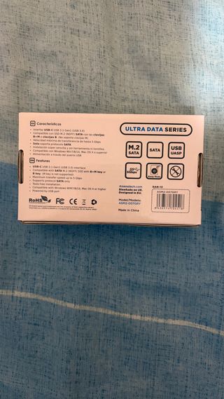 Carcasa para disco duro M.2 SATA con conexión USB Tipo C. - Serie Ultra Data. - Velocidad de transferencia de 5Gbps. - Incluye 2 años de garantía.