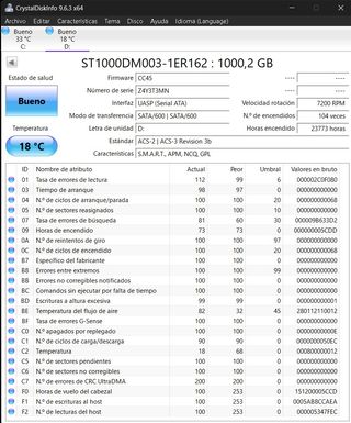 Disco Duro Externo Seagate 1 TB con cable de comunicación. Se adjunta captura de estado con CrystalDiskInfo