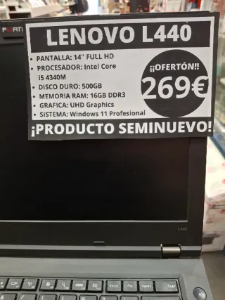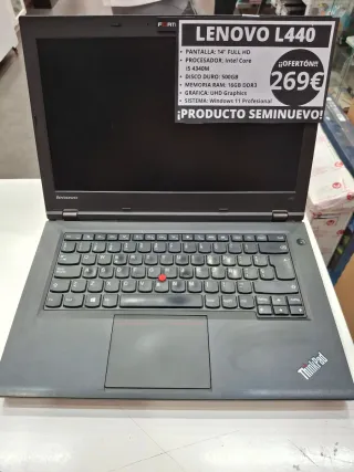 Portátil Lenovo L440 en color negro, ideal para uso profesional o personal. Se encuentra en perfecto estado. - Pantalla: 14 Full HD - Procesador: Intel Core i5 4340M - Disco Duro: 500GB - Memoria RAM: 16GB DDR3 - Gráfica: UHD Graphics - Sistema Operativo: Windows 11 Profesional - Cargador incluido