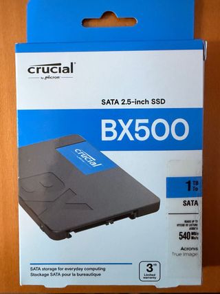 Disco de estado sólido Crucial MX500 de 1TB. - Capacidad: 1000GB - Formato: 2.5 pulgadas - Interfaz: SATA - Incluye software Acronis Cyber Protect Home Office. Valorado en 95€.