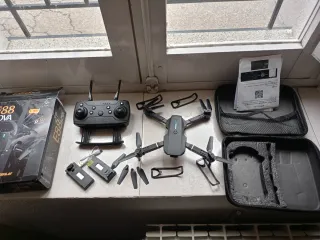 Si vende dron E88 Nova en color negro, ideal para iniciarse en el vuelo. - Dron plegable. - Mando a distancia incluido. - Dos baterías. - Hélices de repuesto. - Protectores de hélice. - Bolsa de transporte. Es totalmente nueva sin estrenar