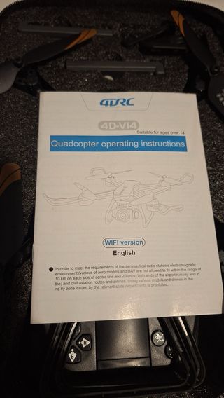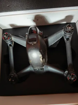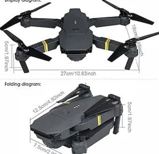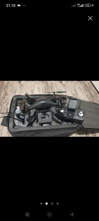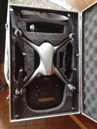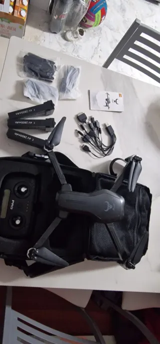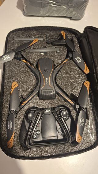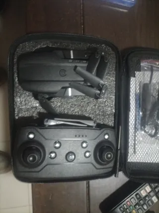 Se vende dron en color negro, con cámara averiada del resto funciona perfectamente.Incluye todos los accesorios necesarios para su uso y transporte. - Dron plegable. - Mando a distancia. - Cámara. - Batería. - Hélices de repuesto. - Bolsa de transporte.
