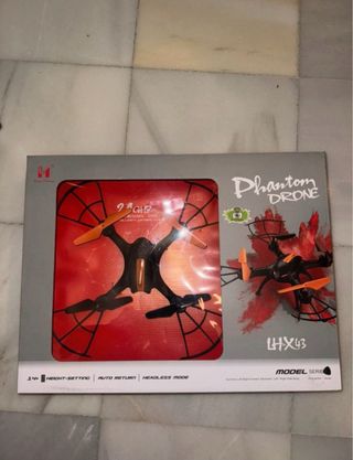 Drone Phantom LH CX43 en su caja original. Listo para volar. - Modelo LH CX43. - Diseño en negro y rojo. - Incluye funciones de ajuste de altura, retorno automático y modo sin cabeza.