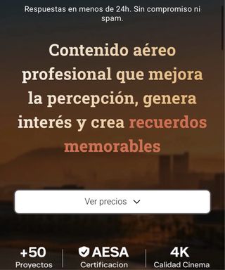 Servicios profesionales de dron para vídeo y fotografía aérea. - Reconocimiento de terrenos - Fachadas y tejados - Zonas de difícil acceso - Seguimiento de obras - Vídeos promocionales e inmobiliarios - Piloto certificado - Dado de alta en organismos oficiales - Permisos y seguros en regla - Vuelos según normativa vigente PRECIOS ORIENTATIVOS Y NO VINCULABLES A PRESUPUESTO FINAL • 📍 Reconocimiento de terrenos / fachadas → 80 – 120 € • 🏠 Inspección de tejados → 100 – 150 € • 🏗️ Seguimiento de obras → desde 120 € • 🏡 Vídeo inmobiliario → 120 – 180 € • ⛰️ Zonas de difícil acceso → a valorar