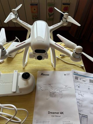 Se vende dron Potensic Dreamer 4K en color blanco. Incluye mando y manual. - Cámara 4K. - Mando a distancia. - Manual de usuario.