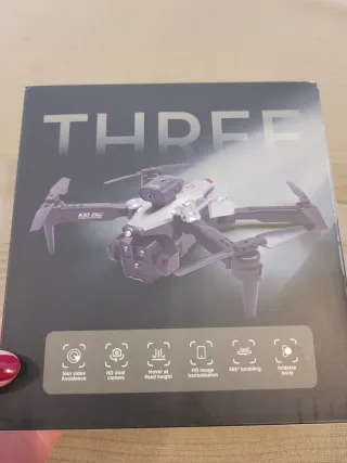 Dron listo para volar, con cámara integrada y tres baterías incluidas para mayor autonomía. - Cámara de alta resolución. - Tres baterías de repuesto.