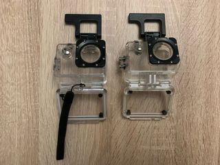 Cámara de acción GoPro plateada, ideal para capturar tus aventuras. - Incluye carcasa protectora transparente. - Diseño compacto y resistente.