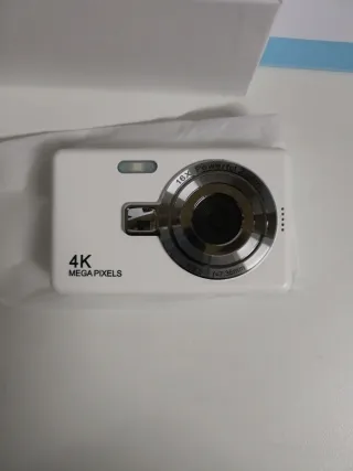 Cámara digital compacta en color blanco, con potente zoom. - Resolución 4K - Zoom potente 16x - Lente f/3.2 f=7.36mm