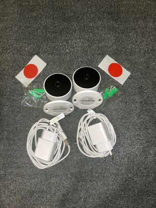 Cámara de seguridad WiFi para exterior, prácticamente nueva. Incluye dos cámaras con visión nocturna y luces LED integradas. - Visión nocturna. - Luces LED. - Conexión WiFi. - Fácil instalación.
