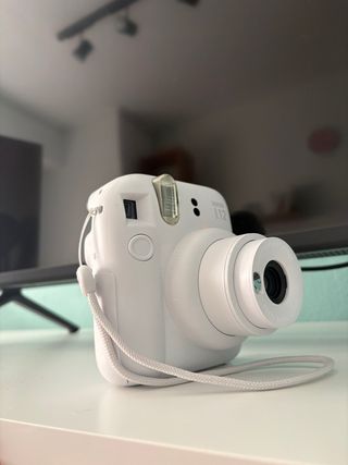 Cámara instantánea Fujifilm Instax Mini 12 en color blanco. Ideal para capturar momentos de forma divertida y obtener fotos al instante. - Diseño moderno y compacto. - Lente de 60mm. - Rango de enfoque de 0.3m a infinito.