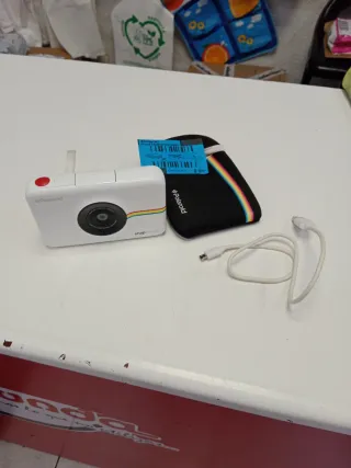Cámara instantánea Polaroid Snap Touch en color blanco. Incluye funda protectora y cable de carga. - Cámara instantánea con diseño moderno. - Funda protectora con diseño de arcoíris. - Cable de carga USB incluido.