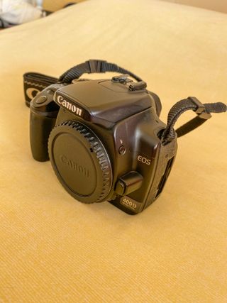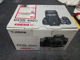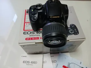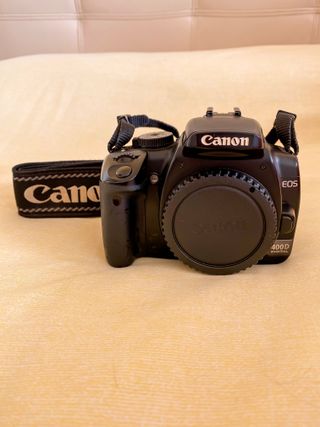 Cuerpo Cámara Canon 400D + accesorios, cámara pequeña y manejable DSLR, ideal para iniciarse en la fotografía réflex, para fotografía callejera y uso cotidiano, sensor CMOS, resolución 10,1 Megapixels, ISO 100 hasta 1600, velocidad de obturación: 30-1/4000s, flash incorporado, montura del objetivo: EF/EF-S, pantalla LCD de 2.5", procesador DIGIC II, conexión USB 2.0 de alta velocidad, Salida de Vídeo (PAL/NTSC), usa tarjetas de memoria tipo CompactFlash Tipo I / II, materiales del cuerpo: Aleación de magnesio / plástico, dimensiones (an x al x prof): 126,5 x 94,2 x 65mm, Peso (cuerpo): Aprox. 510 gr, Incluye: cuerpo de cámara canon