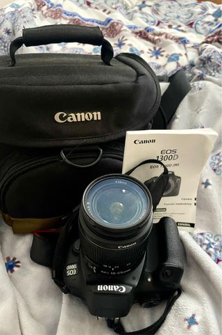 Cámara réflex digital Canon EOS 1300D con objetivo EF-S 18-55mm. - Objetivo zoom estándar. - Ideal para iniciarse en la fotografía. - Incluye tapa de objetivo.