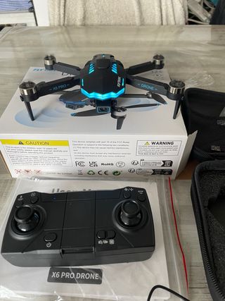 Dron modelo X6 PRO de la marca FLYTANK. Incluye control remoto y accesorios. - Dron plegable. - Luces LED. - Cámara frontal. - Incluye control remoto. - Incluye bolsa de transporte.