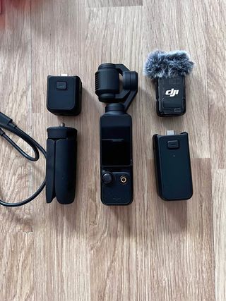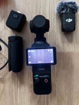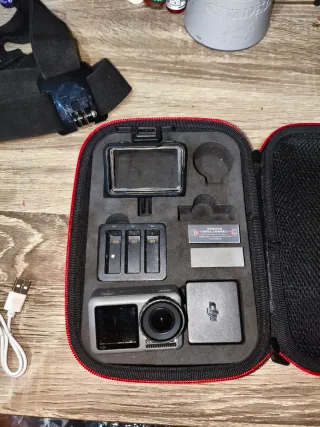 Cámara de acción DJI Osmo Action en color gris. Incluye accesorios. - Cámara de acción DJI Osmo Action. - 3 bateriao y cargador -carcasa plástico - Estuche de transporte. - Arnés para la cabeza - 2 Soporte + uno de ventosa - Adhesivos de montaje. -polvo en pantalla frontal que no afecta para nada ni se ve en fsunfuncionaminto Funciona perfectamente