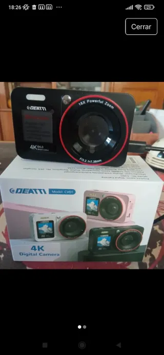 Cámara digital Neatti modelo CV01 con zoom potente. - Zoom potente de 18X. - Resolución 4K. - Lente f/3.2 f=7.36mm.nueva solo sacada de la caja para hacer las fotos