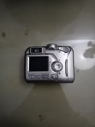 Cámara de fotos digital compacta. - Color plateado. - Pantalla LCD. - Botones de control.