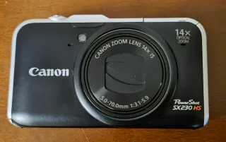 Cámara digital Canon PowerShot SX230 HS en color negro. Incluye caja original y accesorios. - Cámara Canon PowerShot SX230 HS - Caja original - Cargador - Cables - Manuales - CDs de software - tarjeta kington 32 Gb