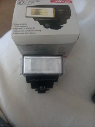 Flash Metz Mecablitz 28 AF-4 N para cámaras Nikon. - Swivel reflector. - TTL flash control. - Integrated AF measuring beam. - Automatic device shutdown. - Battery or rechargeable battery operation.