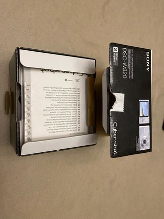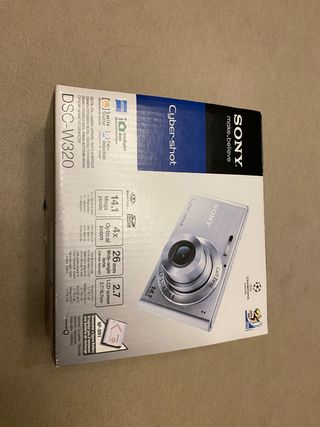 Cámara digital compacta Sony Cyber-shot DSC-W320 en color plata. Ideal para capturar tus momentos con buena calidad. - Sensor de 14.1 megapíxeles. - Zoom óptico 4x. - Lente gran angular de 26 mm. - Pantalla LCD de 2.7 pulgadas. - Incluye batería NP-BN1. Esta nueva prácticamente, se ha utilizado muy poco, tiene todos sus accesorios originales y la batería está perfecta. Medidas 9x1,7x5 cm. Entra en un bolsillo como si nada, esta como nueva.
