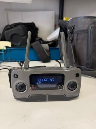 Dron DJI Mavic 2 Pro en color gris. Un dron avanzado para fotografía y video aéreo. - 3 baterias - Filtros de luz - Cámara de alta resolución 4k 10 bit HDR. - Diseño plegable para fácil transporte. - Luces indicadoras verdes en las patas.
