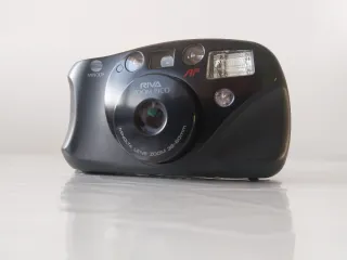 Cámara compacta Nikon RF con lente de 35mm. - Lente Nikon 35mm f/3.5. - Diseño compacto y ligero. Cámara compacta de apuntar y disparar de 35 mm. Cuenta con un objetivo Nikon de 35 mm con una apertura de 1:3.5. Se lanzó originalmente alrededor de 1988. Es un modelo diseñado para el mercado aficionado o de consumo general. Foto, fotografía, vintage,