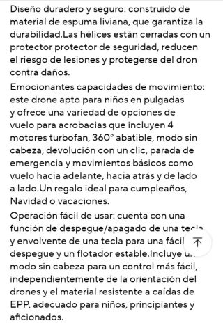 Avión drone listo para volar. Incluye control remoto y accesorios. - 4 hélices de repuesto. - Cable de carga USB. - Batería para el cuerpo del drone. - Manual de instrucciones.