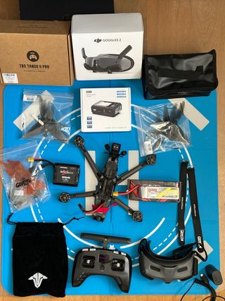 Dron listo para volar. Todos los componentes calidad top: - GEPRC Vapor D6 HD O4 con GPS y magnetómetro. Receptor TBS crossfire. Unidad de vuelo DJI O4. Tam 6”. (con su caja original) - Gafas DJI Goggles 2 (caja original) - Emisora TBS Tango II Pro (bolsa y caja original) - Cargador multifunc. ToolkitRC M7AC (soporta baterías con conectores xt60 y xt30) AC100w/DC300w (1-6S) (caja original) - Batería LiPo GNB 2200mAh 6S 100C - Batería Racepow Li-Ion 5000mAh 6S1P - Samsung 50S - 2 Bolsas de seguridad ignífugas Hoovo (grande y mediana) -Plataforma aterrizaje 50cm de lado, naranja/azul (reversible) Dron y baterías con 1 solo día de uso
