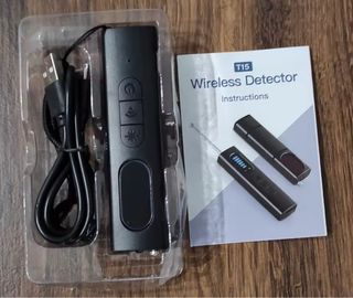Detector de cámaras inalámbricas T15. Compacto y fácil de usar. - Diseño en color negro. - Incluye cable USB para carga. - Manual de instrucciones.