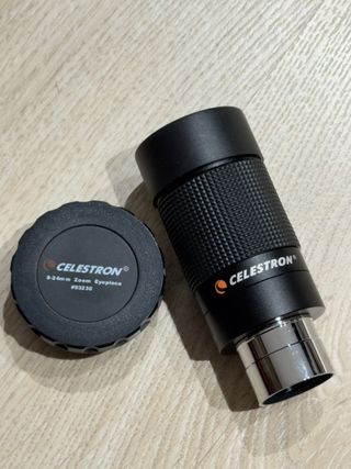 Vendo ocular zoom original Celestron 8-24mm, compatible con cualquier telescopio que acepte oculares de 1,25”. Ideal para observación planetaria y lunar, y muy versátil: puedes ajustar el aumento entre 8 y 24mm sin cambiar de ocular. Está en perfecto estado, incluye tapas de protección. Casi sin usar. Lo vendo porque ya no lo necesito y está guardado desde hace meses. PUEDES HACER UN LOTE CON OTROS ACCESORIOS CELESTRON EN MI PERFIL