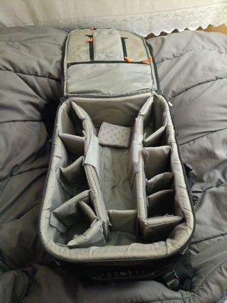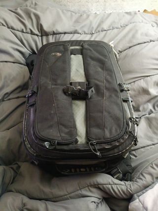Vendo esta mochila Lowepro. Las cremalleras bien. El tirador de fuera con un cable atado para poder abrirla, puedes apañar algo mejor. Súper resistente... ya voy con equipo minimalista y no la uso.