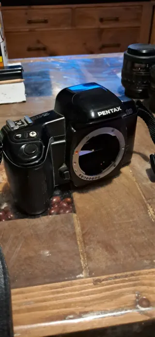 Cámara analógica Pentax Z-10 en color negro. Un clásico para los amantes de la fotografía. - Cuerpo de la cámara. - Correa de sujeción. Flash incorporado. Montura K. Solo venta en persona.