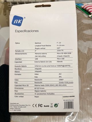 Vendo cámara de acción NK-Montblanc Full HD 1080p, totalmente nueva y sin abrir, en su caja original. 🔹 Grabación en 1080p a 30fps 🔹 Ideal para deporte, viajes, bici, moto, playa, etc. 🔹 Incluye carcasa protectora y soportes (tal como viene de fábrica) 🔹 Marca NK, modelo Montblanc 🔹 Nunca usada Perfecta si buscas una cámara de acción sencilla y funcional a buen precio.