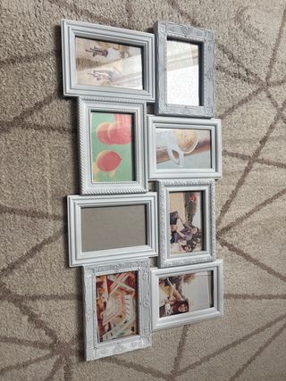 Marco decorativo para varias fotografías en color blanco. Ideal para crear un collage de recuerdos. - Diseño moderno y elegante. - Acabado en blanco mate.