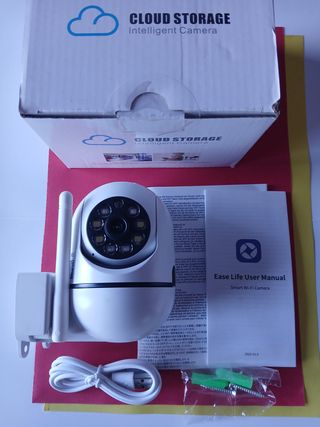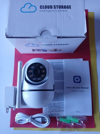 Se venden dos cámaras de vigilancia inteligentes, una para interior y otra para exterior. Ambas son de la marca Ease Life y se conectan por WiFi. - Cámara interior. - Cámara exterior. - Conexión Wi-Fi. - Incluye manuales de usuario.
