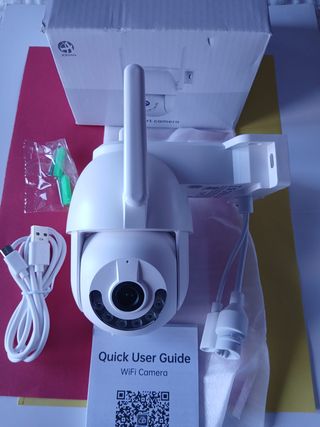 Cámara de seguridad WiFi con resolución 2MP 1080P Prueba de funcionamiento (fotos 2 y 3) SIN ABRIR / TENGO MAS UNIDADES PUEDES VER EN DIRECTO Y GRABAR Y HABLAR Y ESCUCHAR. ESTÁ GENIAL. - Recordatorios de información. - Detección humanoide. - Voz bidireccional. - Visión nocturna a todo color. - Control PTZ bidireccional. - Conexión WiFi 2.4G. - Monitoreo panorámico.
