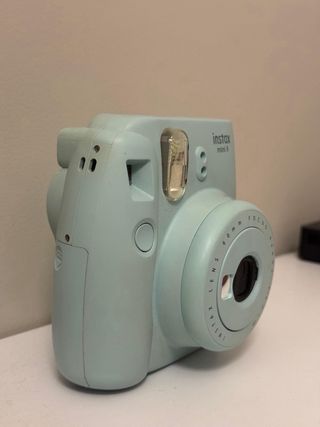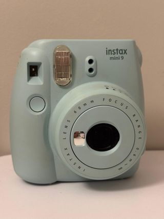 Cámara instantánea Instax Mini 9 en color azul. Ideal para capturar momentos de forma divertida y obtener fotos al instante. - Lente Instax 60 mm. - Enfoque de 0.6 m a infinito. En muy buen estado