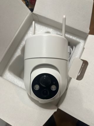 •NUEVA PRECINTADA• Cámara de vigilancia WiFi para exterior con panel solar. - Resolución 2.5K 4MP. - Conexión WiFi 2.4GHz. - Batería recargable. - Visión nocturna en color. - Detección PIR de personas. - Certificación IP65 (resistente al agua y polvo). - Color blanco.