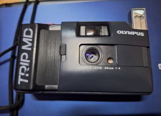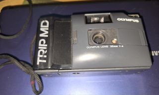 Cámara fotográfica Olympus TRIP MD en color gris y negro. Un clásico para capturar tus momentos. Funcionando. - Lente Olympus 35mm 1:4.