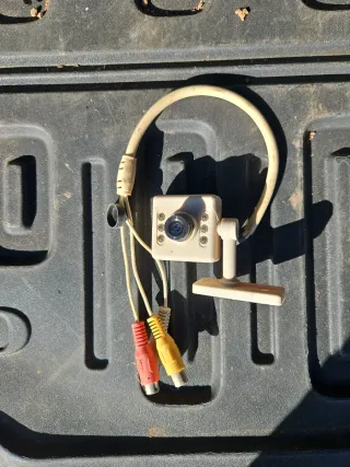 SIN MARCA.Cámara de seguridad de estilo vintage con un diseño compacto. - Cables de conexión RCA (rojo, amarillo, blanco). - Soporte ajustable.