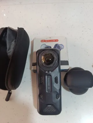 Cámara de acción Insta360 X3. - Diseño compacto y moderno. - Captura imágenes y vídeos en 360 grados. - Solo un uso. - Garantía hasta Agosto de 2028. - Lleva instalados protectores de lentes. - Caja y accesorios extras según fotografías - Incluye otra batería original nueva sin usar.