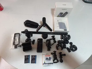 Cámara deportiva Insta360 X4 para capturar vídeos en 360 grados con alta definición. - Diseño compacto y moderno. - Lentes de alta calidad. Grabación 8K Todo los accesorios para montar en bici moto etc.. 3 baterías y cargador externo para las 2 baterías sin usar. Recambio de lente. Palo selfie y trípode. Caja original con tarjeta 128gb alta resolución. Protector de lente. Funda para la cámara. Solo se a usado 2 veces vendo para comprar la insta 360 x5. No negociable.