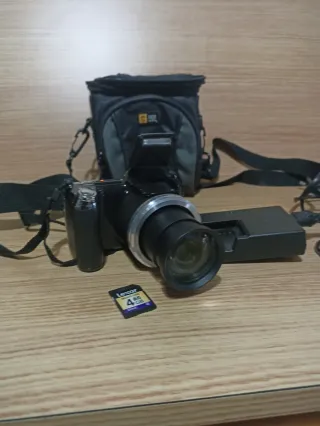 Se vende cámara fotográfica Nikon en color negro, junto con su bolso de transporte y cargador. - Bolso acolchado para proteger la cámara. - Cargador de batería Nikon. - Correa para colgar la cámara.