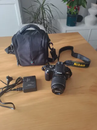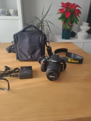Cámara réflex digital Nikon D5100 en color negro. - Cuerpo de cámara. - Correa. - Tapa de objetivo. - objetivo 18-55mm - Regalo funda y libro fotografía de la camara - cargador de batería y bateria