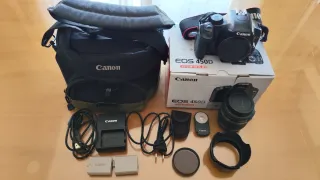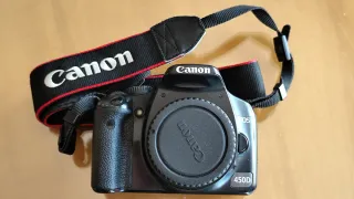 Se vende cámara réflex digital Canon EOS 450D en kit con objetivo y accesorios. - Cámara réflex digital Canon EOS 450D. - Objetivo Canon EF-S 18-55mm IS. - Bolso de transporte Canon. - Cargador de batería. - Batería adicional. - Tapa de objetivo. - Parasol. - Filtro. - Mando a distancia.